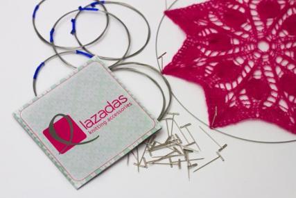 ערכת חוטי בלוקינג מיקצועית מבית Lazadas, משמשת לעיצוב פריטים לאחר הסריגה. בלוקינג הינה טכניקה להשטחת והגהצת הסריג לפני החיבור והגימור.