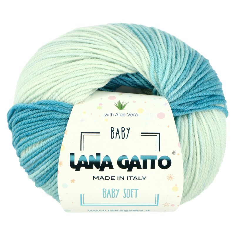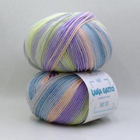 Lana Gatto fashion collection yarns for babies. 100% extra fine merino wool processed with Aloe Vera