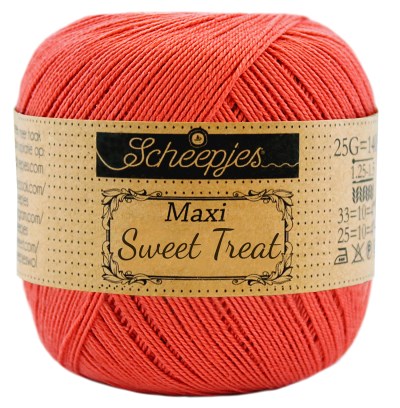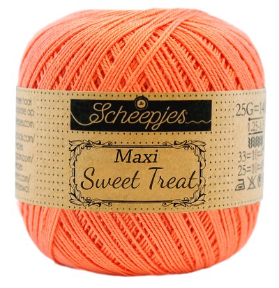 Scheepjes Maxi Sweet Treat 25 grams is the same beautiful high twist mercerised cotton lace weight yarn as Maxi Bonbon was and is available in the same 87 shades. This fine quality yarn is perfect for fine crocheting and lacy borders around cozy blankets. The colours match perfectly with our Catona yarns to enable you to mix and match.