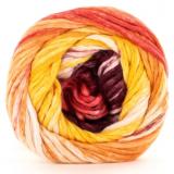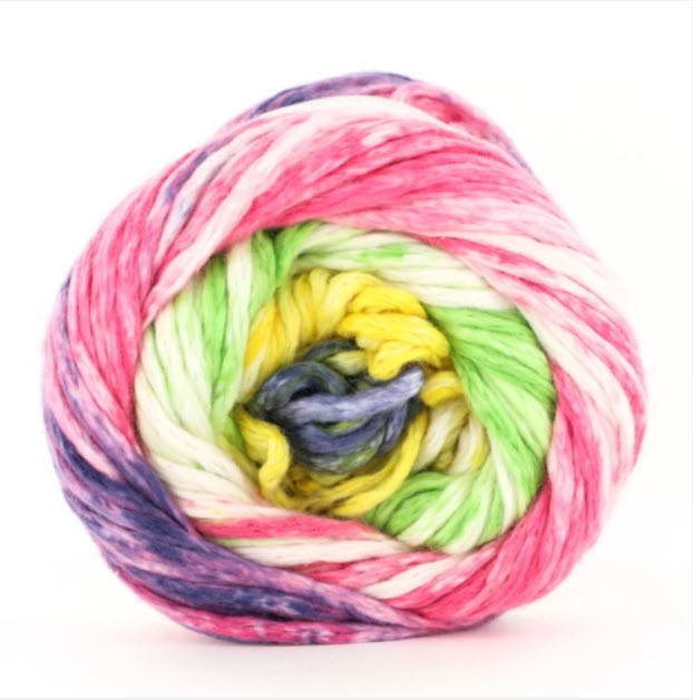 Super soft Israeli Mako cotton and a bit of nylon for added strength, Nimbus Stripes is a new unique self striping print using the bulky Nimbus as a base! Each knits up at a chunky gauge of 12-15 stitches per 4 inches on US 9-11 (5.5-8.0mm) needles. Imagine the joy of warm weather cotton knitting combined with a bulky gauge. Fairly unique, wouldn't you agree?