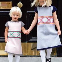 השמלה של אמיליה הינה דוגמה אופנתית לילדות לעונת מעבר בעלת מוטיבים סקנדינביים בחזית ושרוולים וסיומת בצבעים שיקיים מנוגדים.
