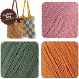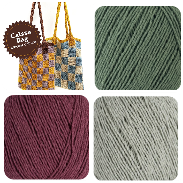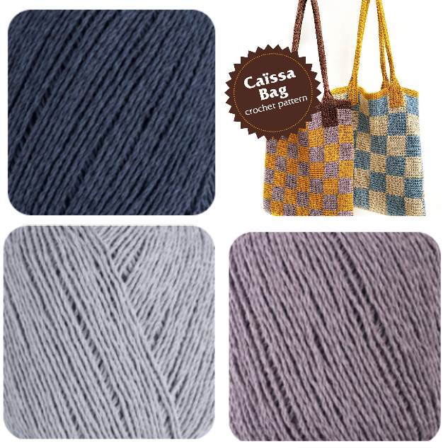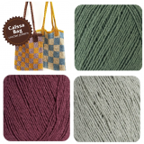 הערכה כוללת חוטים תואמים (בהרכב של 51% פשתן ו 49% כותנה) ב 3 צבעים בהתאם לעיצוב התיק, מסרגת קרושה וקוד אישי להורדת ההוראות מאתר המעצבת